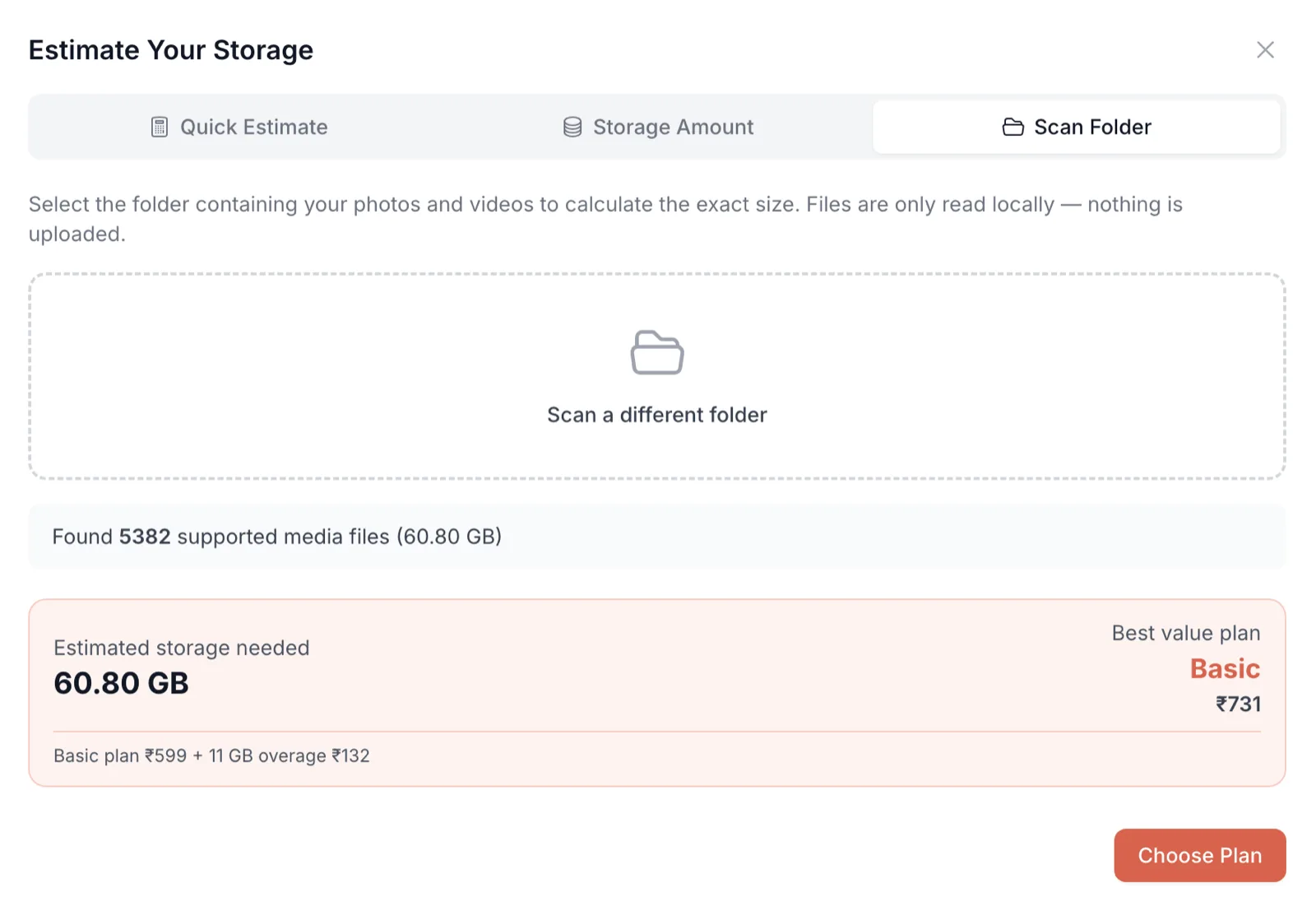 Photographers and their clients typically maintain copies of memories on hard disks costing ₹3,000–₹9,000 each. But hard disks fail, get lost, and over time, the cost of keeping high-resolution memories accessible becomes prohibitive. GetUrSnap's intelligent storage solution keeps your event galleries alive for a lifetime using smart compression, downsampling, and tiered storage — for just tens of rupees per month.